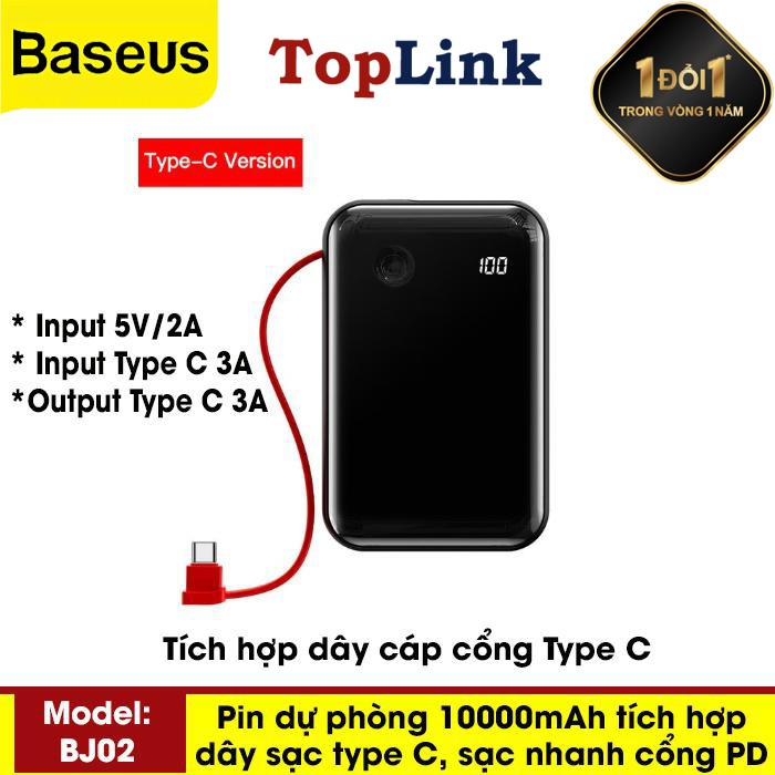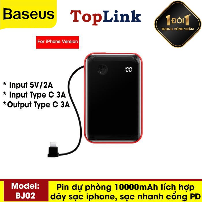 Pin Sạc Dự Phòng Mini Digital Display BJ02 10000mah Sạc Nhanh 3A Tích Hợp Cáp Lightning Sạc Cho Iphone Có Màn Hình Hiển Thị Phần Trăm PinChào mừng bạn đến với TOPLINK - Thế Giới Phụ Kiện