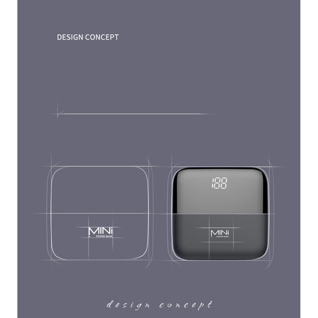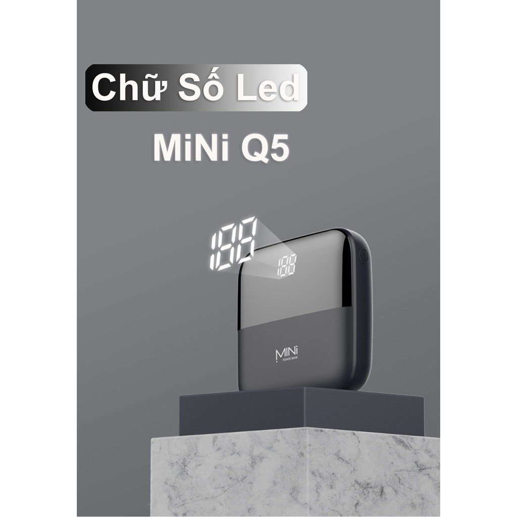 Sạc Dự Phòng Mini Q5 Sạc Nhanh Siêu Mỏng Mặt Kính Nhỏ Gọn Power Bank 10000mAh 2 Cồng Đầu Ra