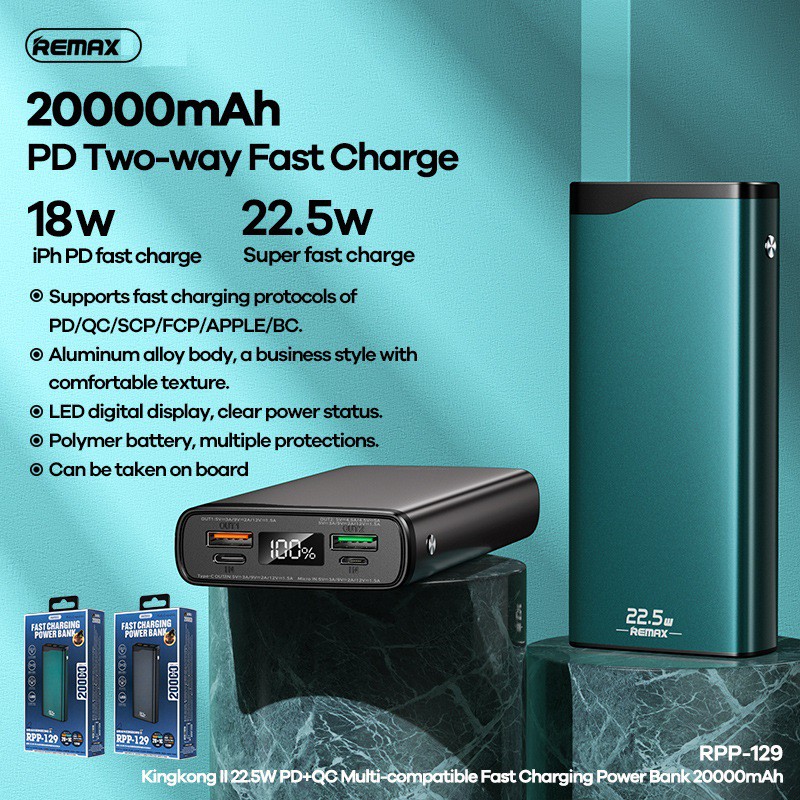 Giới thiệu Pin Sạc Dự Phòng Mini Remax RPP-129 20000Mah (Sạc Nhanh QC3.0 18W, 22.5W, PD 18W) - BH 1 Năm - Hưng Long PC