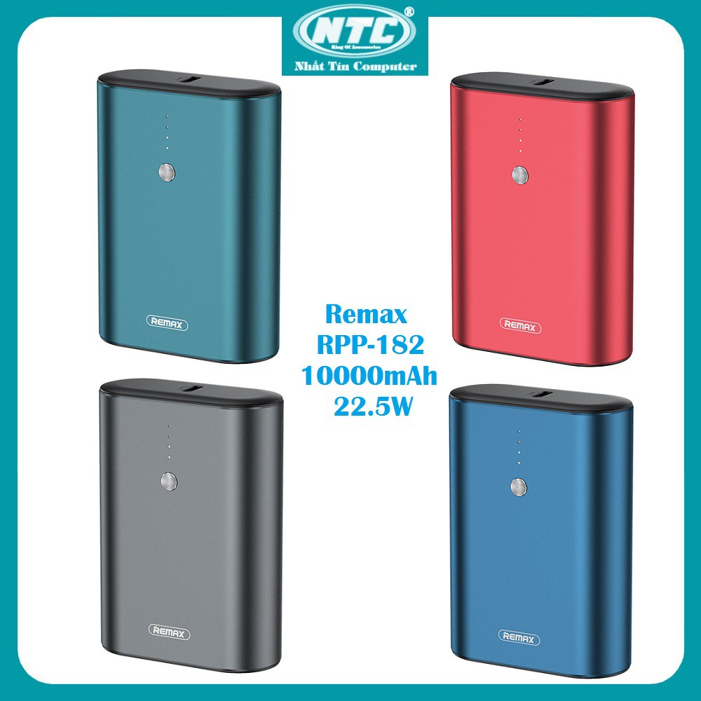 Pin sạc dự phòng mini Remax RPP-182 10000mAh sạc nhanh QC3.0 max 22.5W, Type-C PD 18W - Nhất Tín Computer
