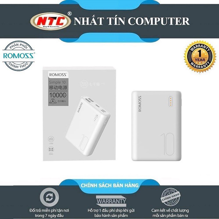 Pin sạc dự phòng mini Romoss Simple 10 10000mAh - Nhỏ gọn tiện dụng (Trắng) - Hãng phân phối chính thứcThông tin sản phẩm: