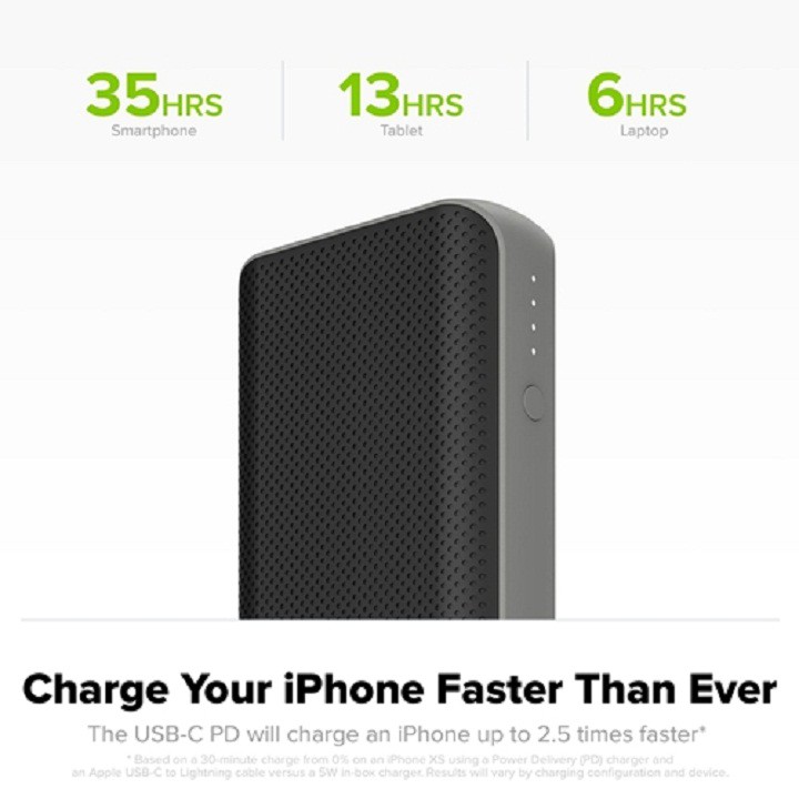 ✶Sạc lại Pin sạc dự phòng mophie powerstation PD nhanh kỷ lục: Cổng USB-C được chia sẻ có thể sạc lại Pin sạc dự phòng mophie powerstation PD XL 10050mAh - 18W nhanh chóng, lên đến 15W, do đó, nó sẵn sàng hoạt động khi bạn muốn.