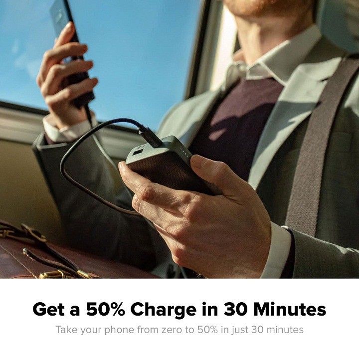 Cổng USB-C và USB-A: Sạc hai thiết bị cùng một lúc. Cổng USB-C sẽ cung cấp công suất lên tới 18W cho các thiết bị tương thích sạc nhanh và cổng USB-A cung cấp năng lượng lên tới 18W.