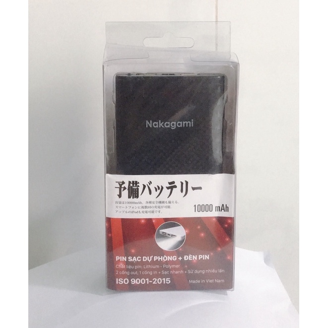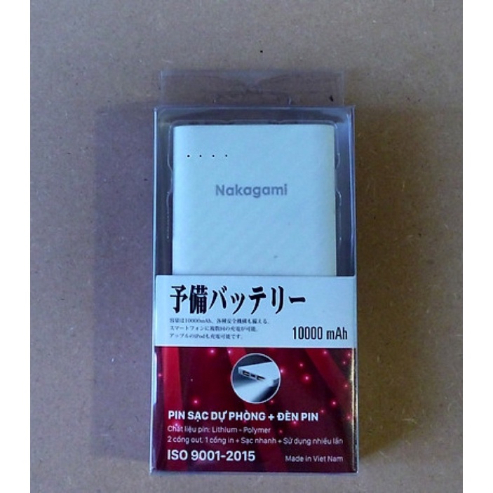 PIN SẠC DỰ PHÒNG NAKAGAMI 10.000mAh 2 CỔNG USB VÀ ĐÈN PIN