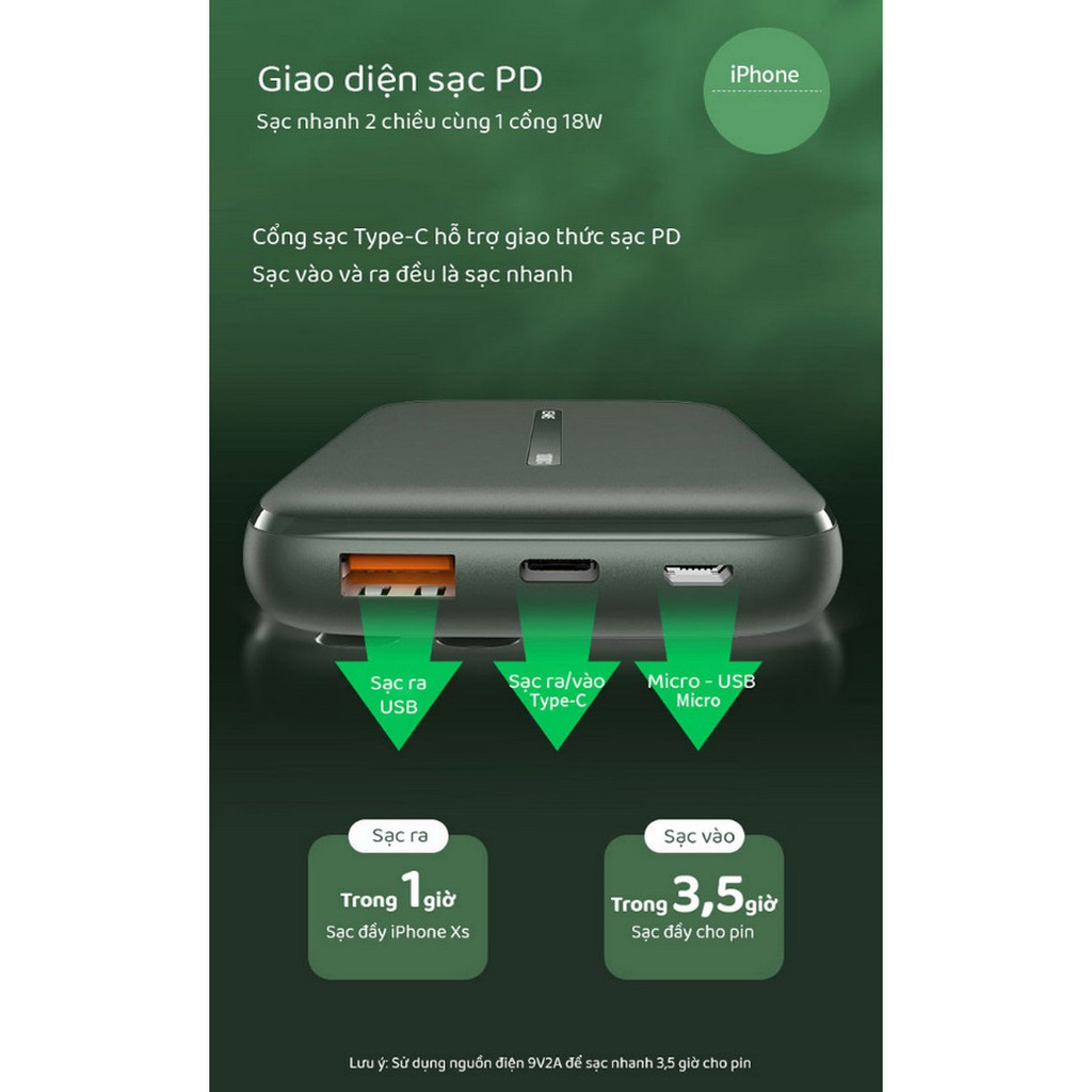 Phương thức sạc nhanh PD 3.0 (sạc 2 chiều ra và vào trên cùng 1 cổng) và QC3.0