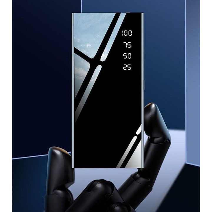 - Pin Sạc Dự Phòng mặt gương đen có mức dung lượng lớn lên tới 10000mAh, cho bạn nguồn năng lượng dự trữ siêu khủng.