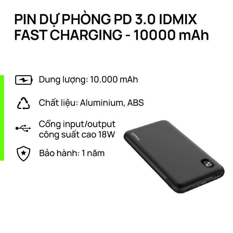 - Tên sản phẩm: PIN DỰ PHÒNG PD 3.0 IDMIX FAST CHARGING