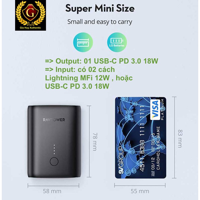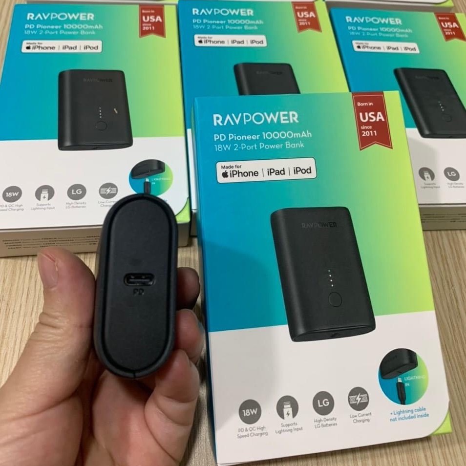 Điện Thoại & Phụ Kiện > Phụ kiện > Sạc dự phòng & Pin > Sạc dự phòng || Pin sạc dự phòng Pioneer RAVPOWER RP-PB206 10000mAh PD 3.0 18W, Input Lightning MFi 12W & PD 3.0 18WCòn hàng