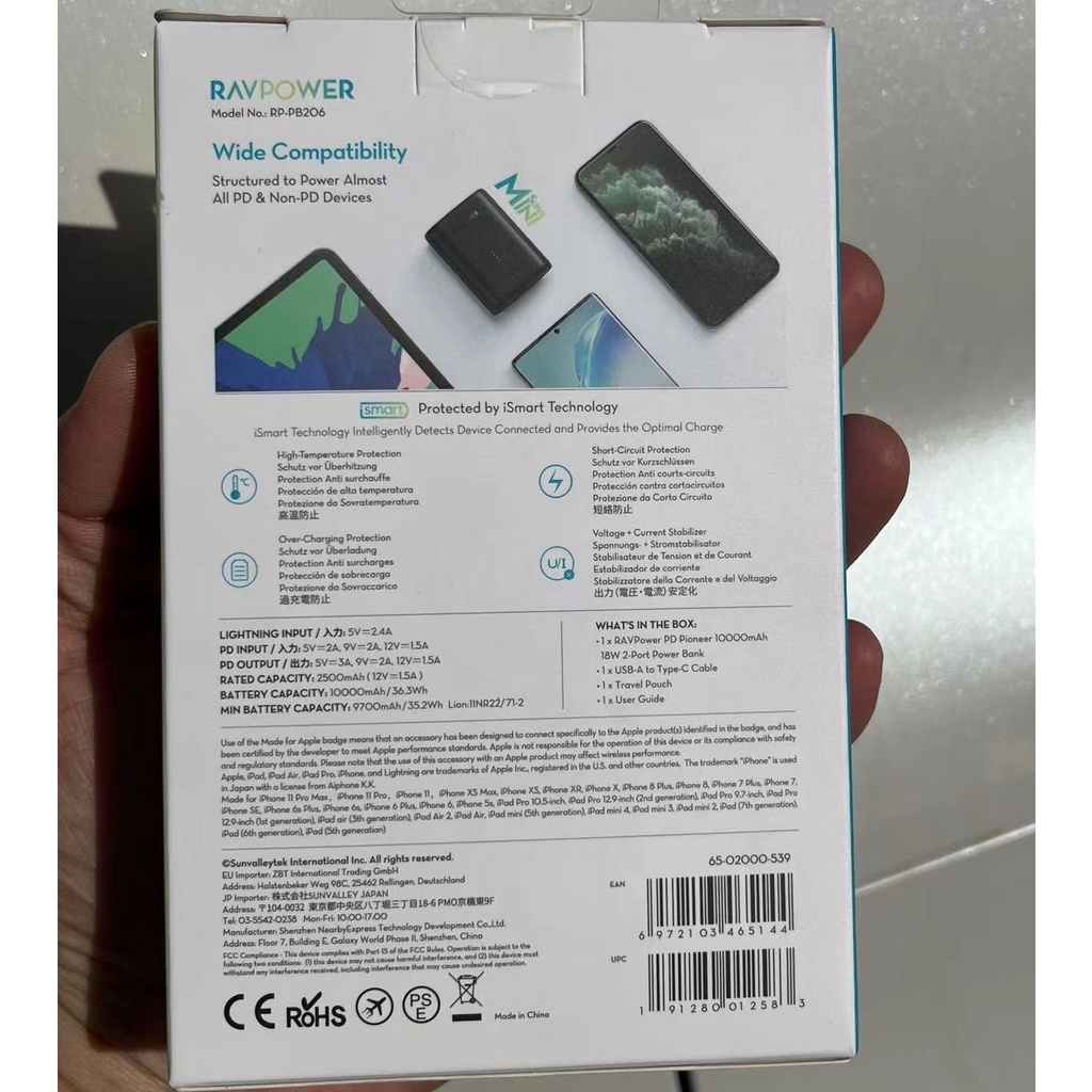 - Đặc biệt, RP-PB206 còn dc trang bị thêm 01 cổng Lightning input đạt chuẩn MFi (có nhiều pin dự phòng trên thị trường có Input Lightning, nhưng hiếm sản phẩm nào đạt chuẩn MFi input) công suất 12W, giúp bạn có thêm 1 sự lựa chọn sạc lại cho pin RP-PB206 bằng chính dây cáp Lightning hoặc dây cáp C to Lightning của bạn, mà ko cần mang theo nhiều dây cáp