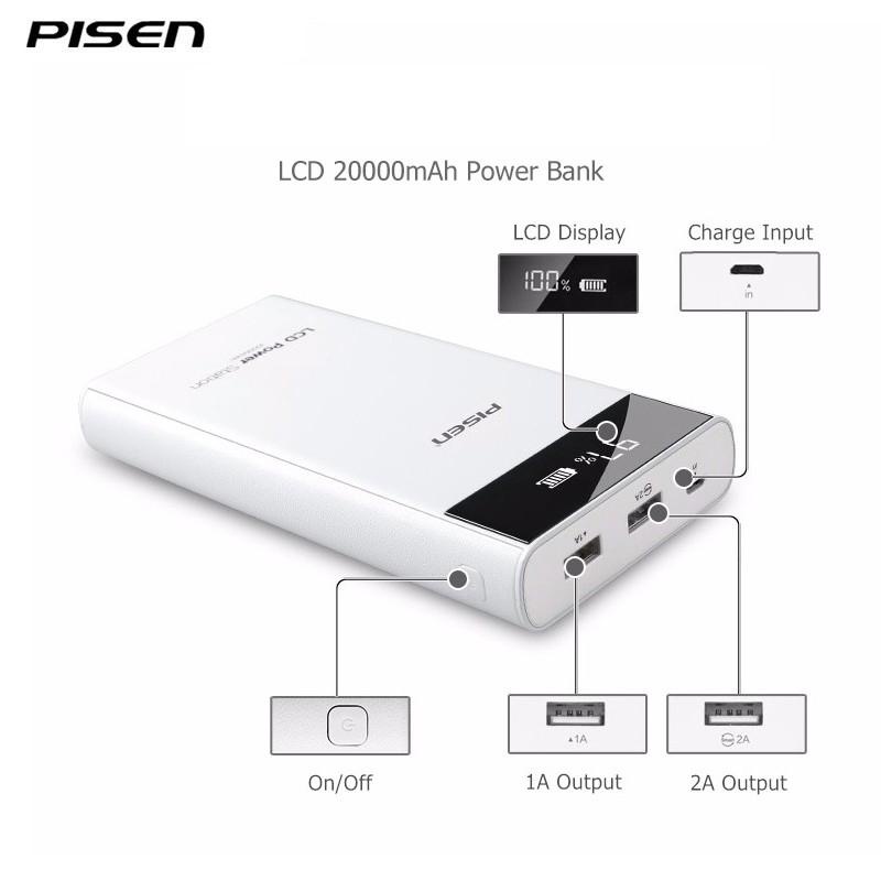 Điện Thoại & Phụ Kiện > Phụ kiện > Sạc dự phòng & Pin > Sạc dự phòng || Pin sạc dự phòng Pisen 20.000mAh LCD Power Station TS-D199 - Model 2017Còn hàng