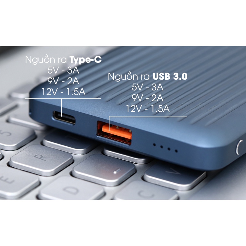 Nguồn ra:Type-C PD: 5V - 3A, 9V - 2A, 12V - 1.5AUSB: 5V - 3A, 9V - 2A, 12V - 1.5A