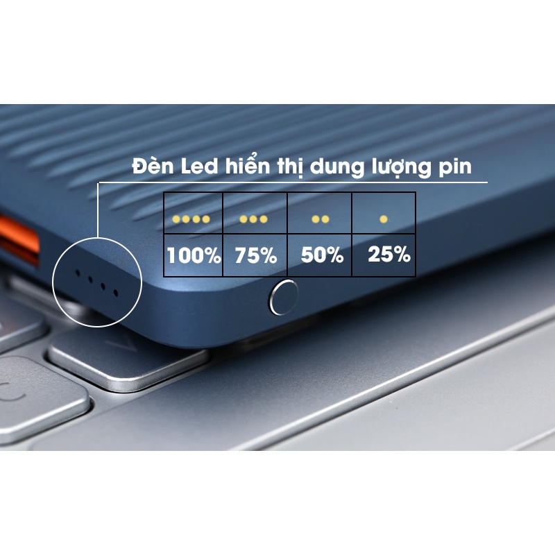 Dung lượng pin 10.000 mAh, hiệu suất sạc 65%.