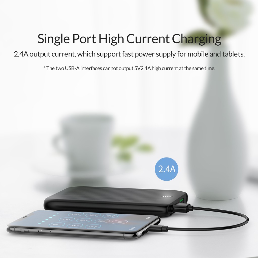 Orico K10S 10000mAh có thể được sử dụng để sạc đầy iPhoneX đến 3 lần, 1 lần iPadmini4,3 lần Samsung S9, . Giờ đây bạn không cần phải lo lắng về vấn đề điện thoại hoặc các thiết bị điện tử khác hết pin trong những chuyến đi dài ngày.