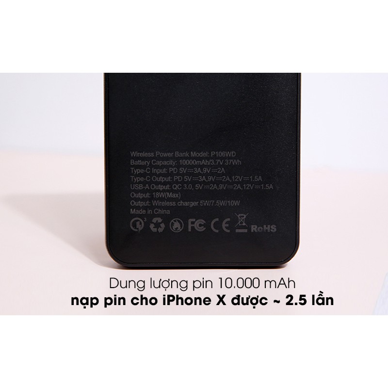 Giới thiệu Pin sạc dự phòng Polymer 10.000mAh không dây Type C PD QC3.0 Xmobile PowerLite P106WD Đên