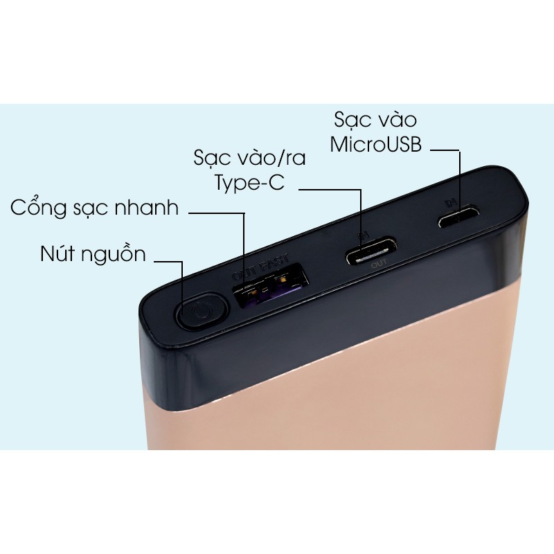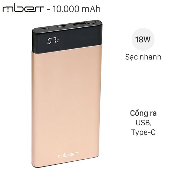 Điện Thoại & Phụ Kiện > Phụ kiện > Sạc dự phòng & Pin > Sạc dự phòng || Pin sạc dự phòng Polymer 10.000mAh Type C PD QC3.0 Mbest DS506-WB GoldCòn hàng