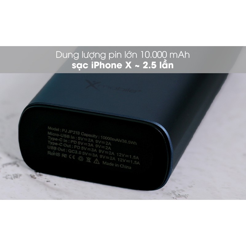 Giới thiệu Pin sạc dự phòng Polymer 10.000mAh Type C PD QC3.0 Xmobile PowerSlim PJ JP213