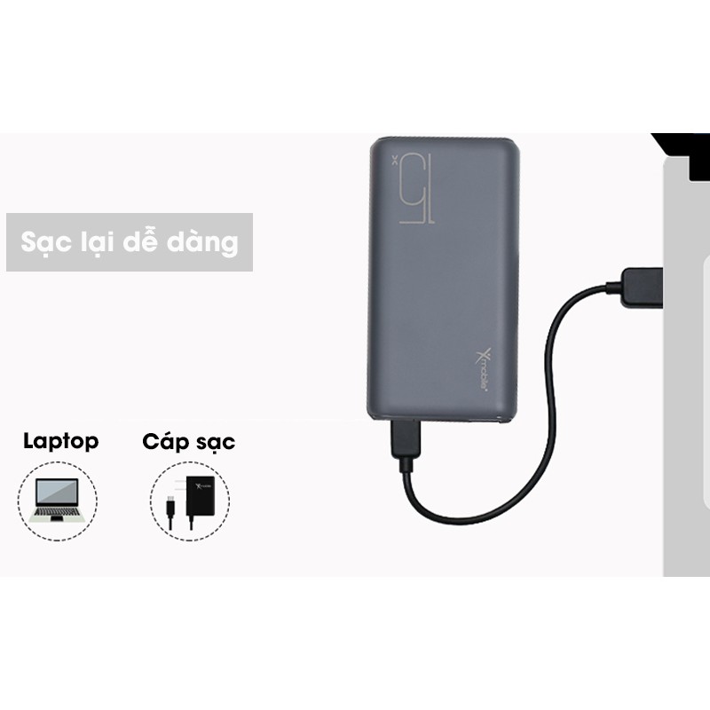 Dung lượng lớn 15.000mAh, an toàn với lõi Polymer.