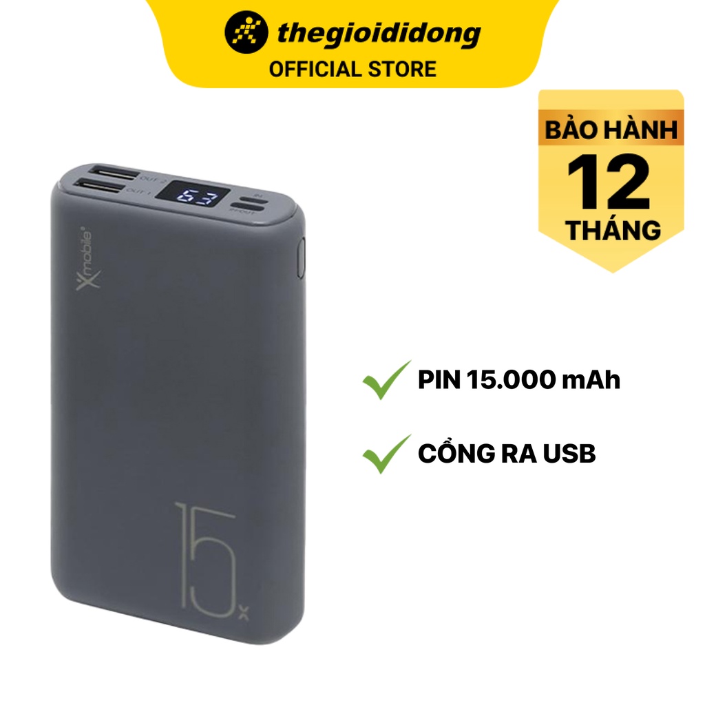 Pin sạc dự phòng Polymer Xmobile PJ JP200 Xám 15000mAh Type C/2 cổng USB 1 cổng TypeC - Chính hãng BH 12 tháng