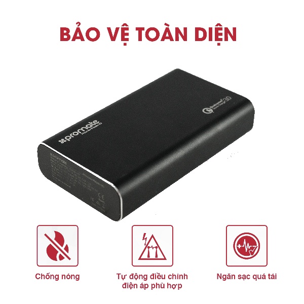 Điện Thoại & Phụ Kiện > Phụ kiện > Sạc dự phòng & Pin > Sạc dự phòng || Pin Sạc Dự Phòng Promate Powerpeak-10 10000 mAh QC3.0 3 Cổng Type-C MicroUSB - Hàng Chính HãngCòn hàng