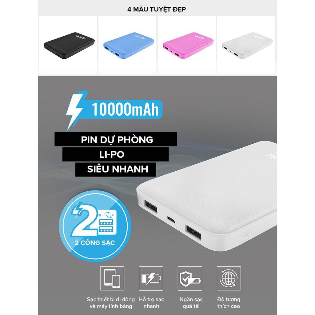 DUNG LƯỢNG 10000mAh CÙNG 2 CỔNG SẠC TIỆN LỢI