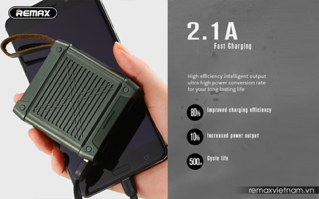 🔯Pin sạc dự phòng quân đội 10.000mAh Remax RPP-79 được cấu tạo với lõi pin Lithium Polymer cùng nguồn ra tối đa 2.1A có khả năng hỗ trợ sạc nhanh, cải thiện được hiệu suất sạc tốt hơn đến 80%, đem lại hiệu quả tốt nhất. Chip thông minh cung cấp công suất lên đến 38W, cho ra điều kiện điện áp một cách ổn định, không thay đổi nhiều, giúp bảo vệ quá dòng, sạc quá tải và chống cháy nổ.
