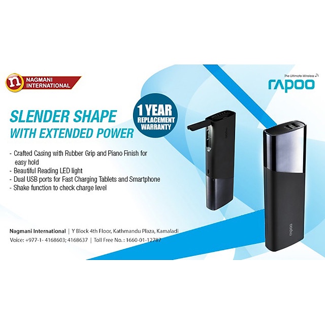 Thiết kế nhỏ gọn, đẹp mắtPin Sạc Dự Phòng Rapoo có thiết kế gọn nhẹ, phù hợp với những người dùng thường xuyên phải di chuyển, thiết kế hoài hòa với chiếc điện thoại di động của bạn.
