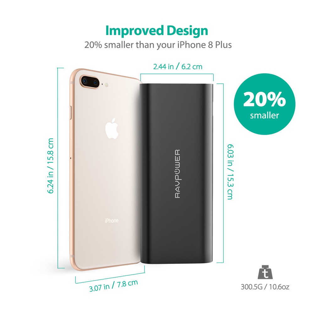 - Pin Sạc Dự Phòng RAVPower RP-PB010 16750mAh là pin dự phòng cao cấp chính hãng RAVPower (USA) dùng cho điện thoai có dung lượng tương đối khủng hiện nay. Với dung lượng lên đến 16750mAh, RP-PB010 sạc đầy iPhone 8 cho 5,5 lần, iPad mini 4 cho 1,9 lần hoặc Galaxy S8 trong 3,2 lần.