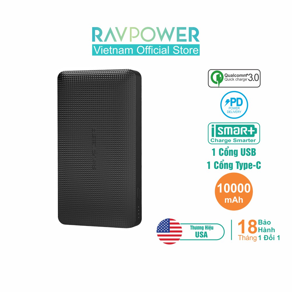 Pin Sạc Dự Phòng RAVPower 10000mAh Sạc Nhanh PD 18W Type-C, Quick Charge 3.0 RP-PB094 (Đ