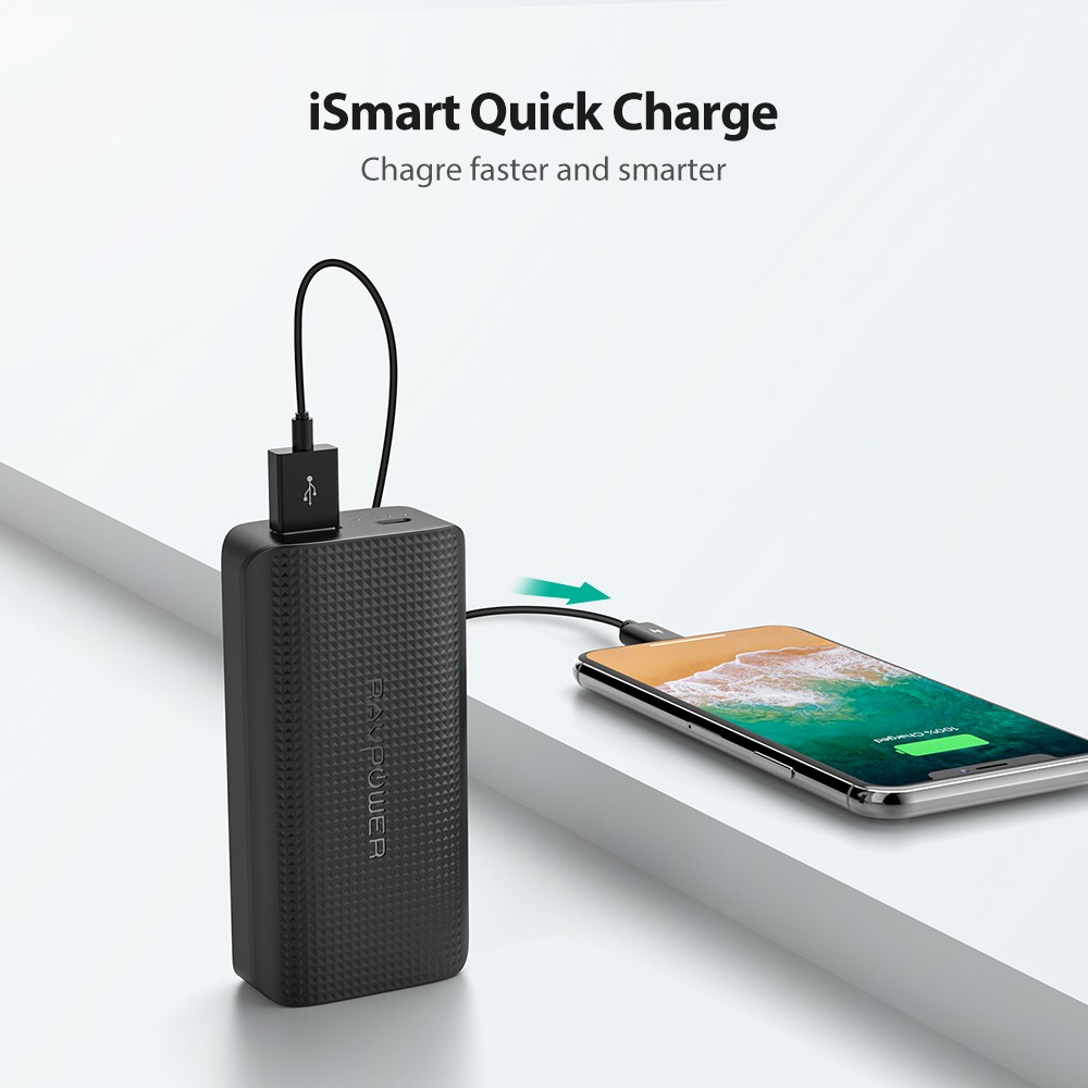 Giới thiệu [Mã BMBAU50 giảm 7% đơn 99K] Pin Sạc Dự Phòng RAVPower 6700mAh 12W iSmart, Thiết Kế Nhỏ Gọn, Đệm Cao Su