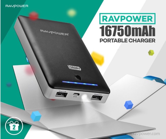 Điện Thoại & Phụ Kiện > Pin sạc dự phòng > 10000 - 20000mAh || Pin Sạc Dự Phòng RAVPower RP-PB19 16750mAh tích hợp đèn pin FlashCòn hàng