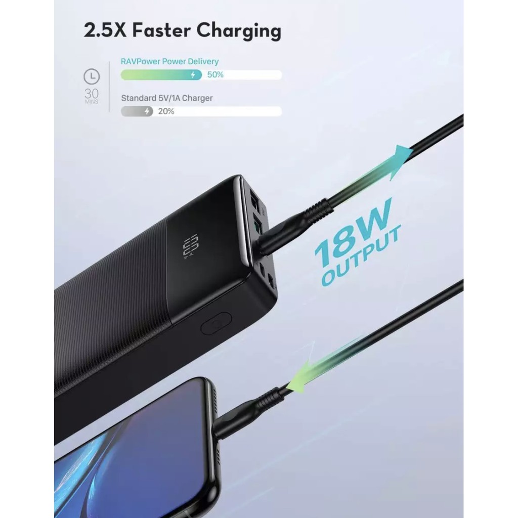 Giới thiệu Pin sạc dự phòng RavPower RPPB172 20000mAh, PD 3.0 18W & QC 3.0 18W