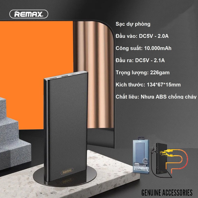 Pin dự phòng Remax 10000 mAh có kiểu dáng nhỏ gọn chứa đựng hiệu suất vô cùng lớn cho bạn thoải mái sạc cho thiết bị mọi lúc mọi nơi.