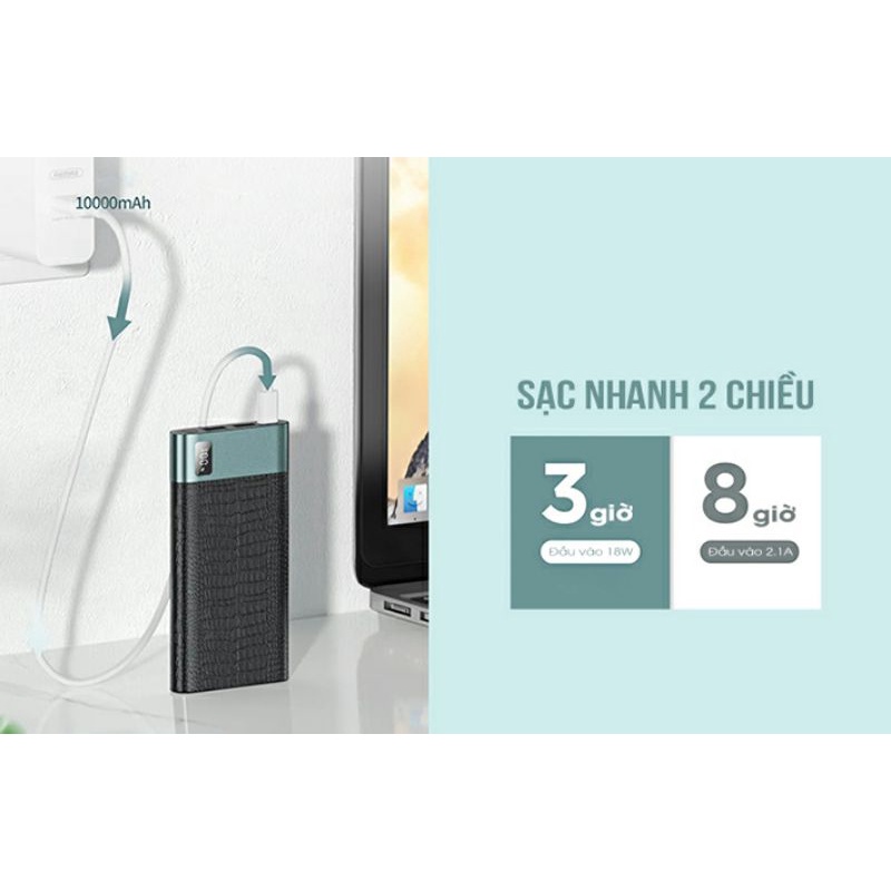 Điện Thoại & Phụ Kiện > Phụ kiện > Sạc dự phòng & Pin > Sạc dự phòng || Pin Sạc Dự Phòng Remax PD QC3.0 RPP-5 10000mah, Sạc Nhanh 18WCòn hàng