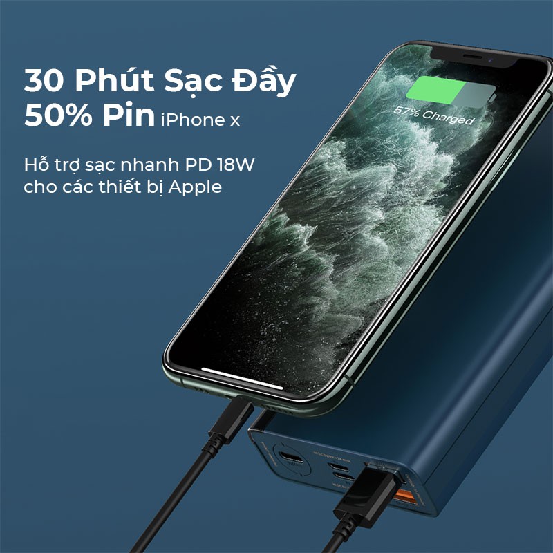 ⚡️ Được trang bị công nghệ sạc nhanh PD 3.0, QC 3.0 giúp bạn có thể sạc đầy pin cho thiết bị trong thời gian ngắn.(Chỉ với 30 phút có thể sạc đầy 50% thiết bị)