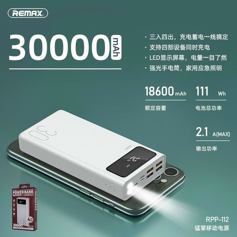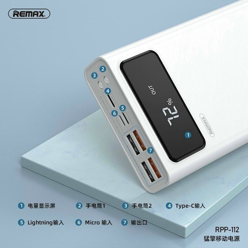 Điện Thoại & Phụ Kiện > Pin sạc dự phòng > >20000mAh || Pin Sạc Dự Phòng REMAX RPP-112 30000mẠhCòn hàng
