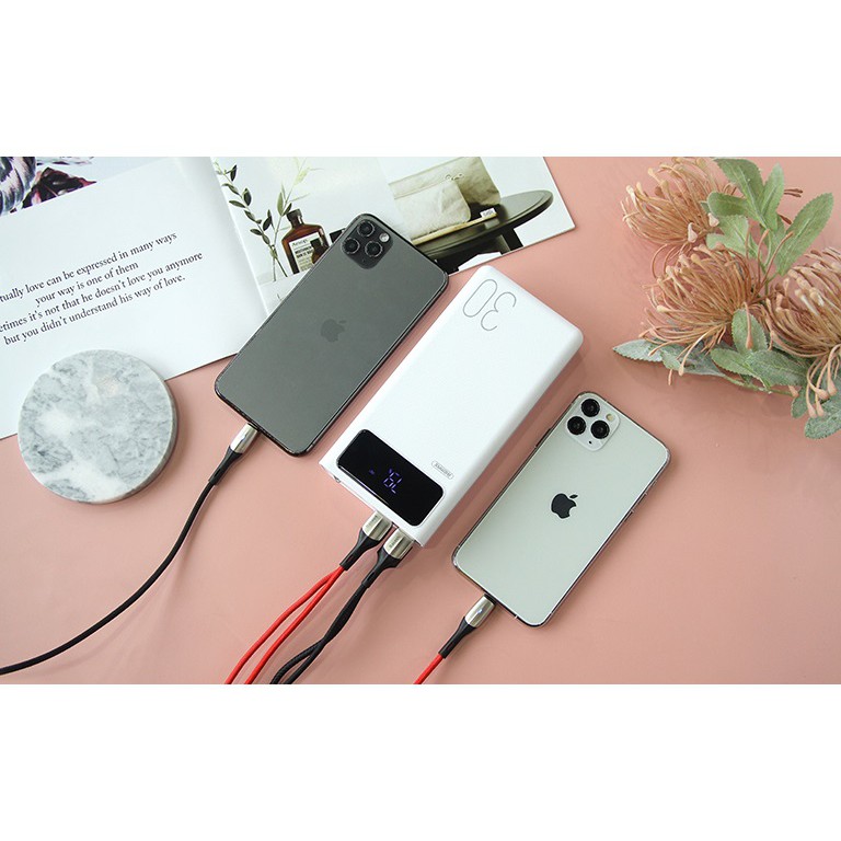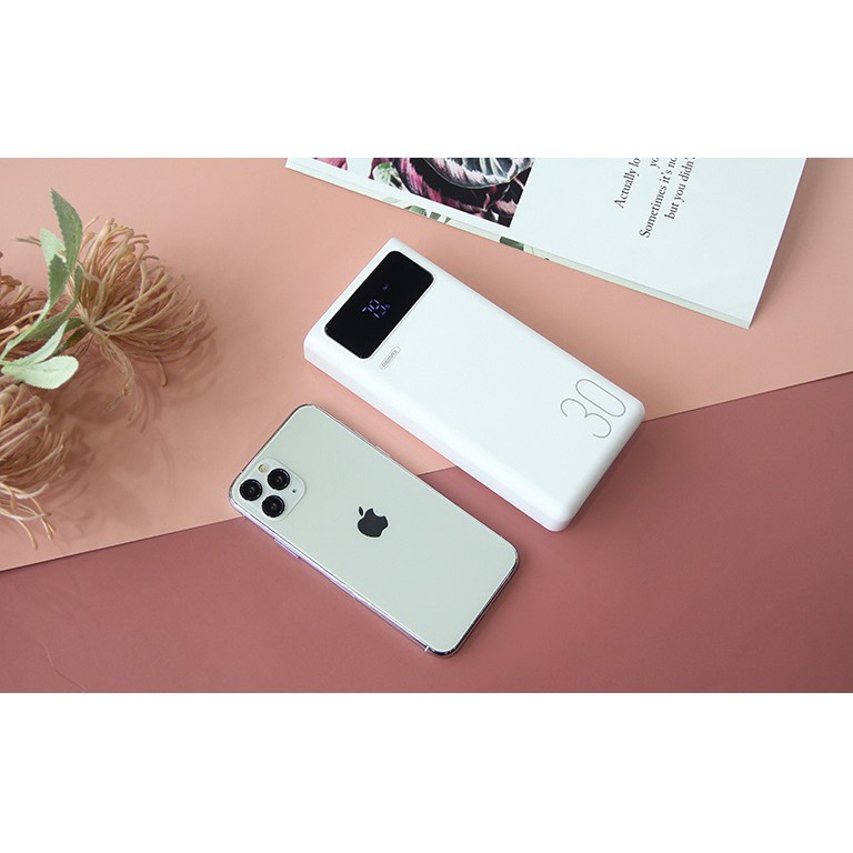 Điện Thoại & Phụ Kiện > Pin sạc dự phòng > >20000mAh || Pin sạc dự phòng Remax RPP-112 30000mAh, lõi Li-polymer, 3 cổng input, 4 cổng output (Trắng) - Hãng phân phốiCòn hàng