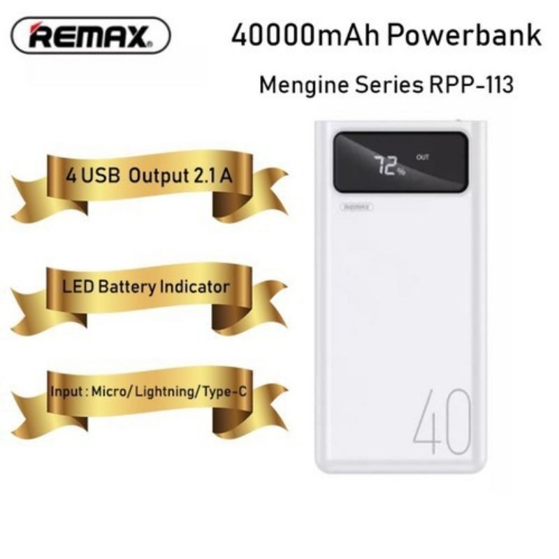 - Tên sản phẩm: Pin sạc dự phòng Remax RPP-113 40.000mAh- Hãng: Remax