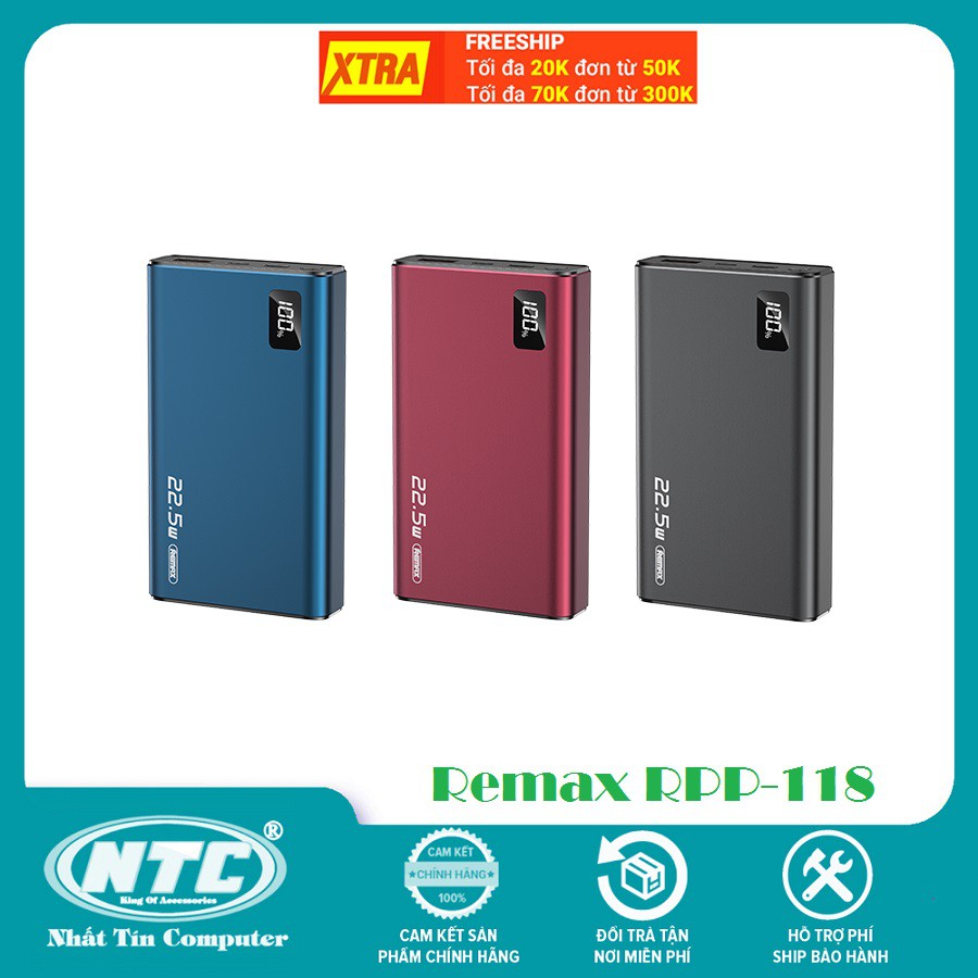 Pin sạc dự phòng Remax RPP-118 10.000mAh sạc nhanh QC3.0 và PD max 22.5W - Hàng chính hãng