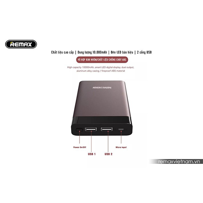 Pin Sạc Dự Phòng Remax RPP-120 10000mAh Màn Hình LCD Hiển Thị Pin ( Bảo hàng 12 tháng - lỗi 1 đổi 1)