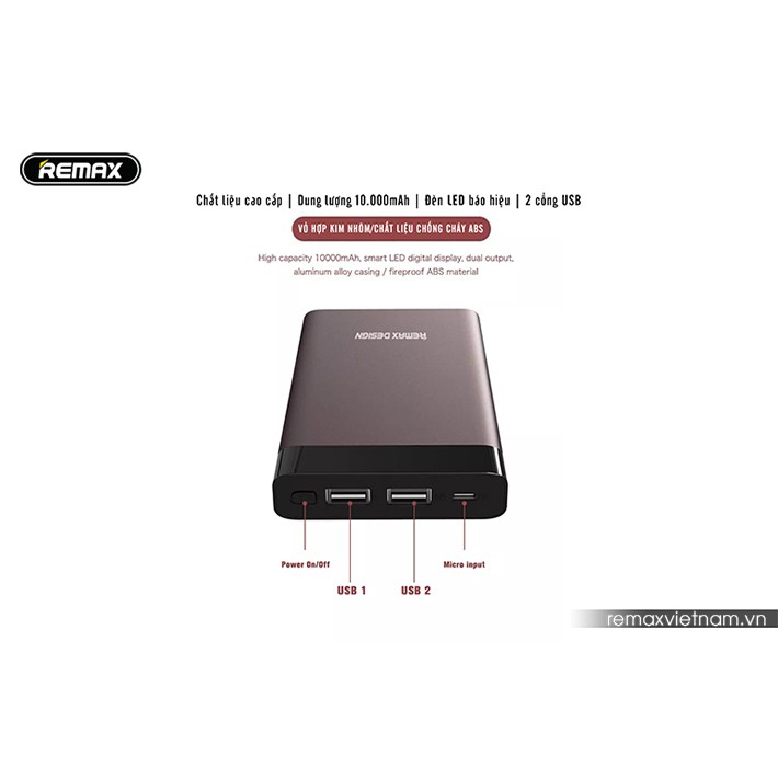 Thương hiệu: Remax | Xem thêm các sản phẩm Pin sạc dự phòng di động của RemaxMô tả ngắn