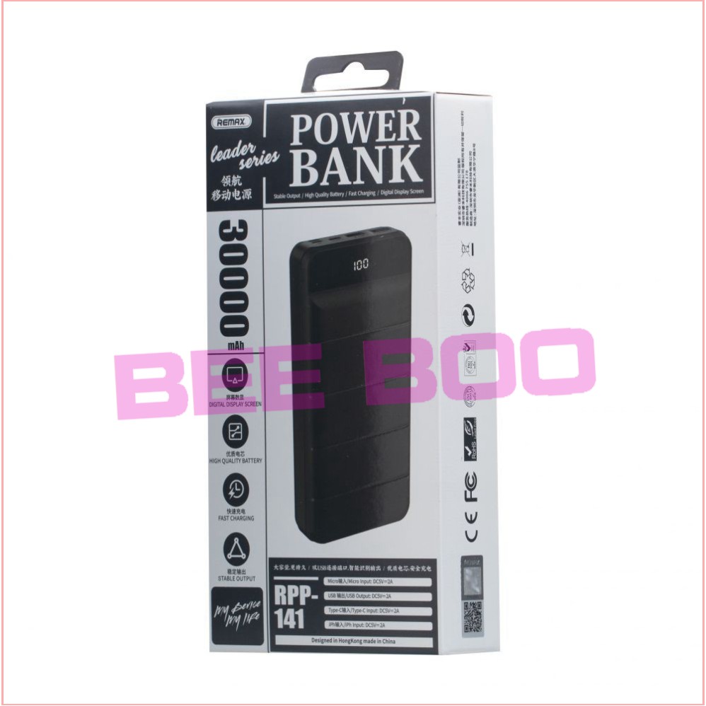 Điện Thoại & Phụ Kiện > Pin sạc dự phòng > >20000mAh || Pin sạc dự phòng Remax RPP-141 30000mAh lõi Li-Polymer 3 cổng sạc vào - Hàng chính hãng [BEEBOO SHOP]Còn hàng