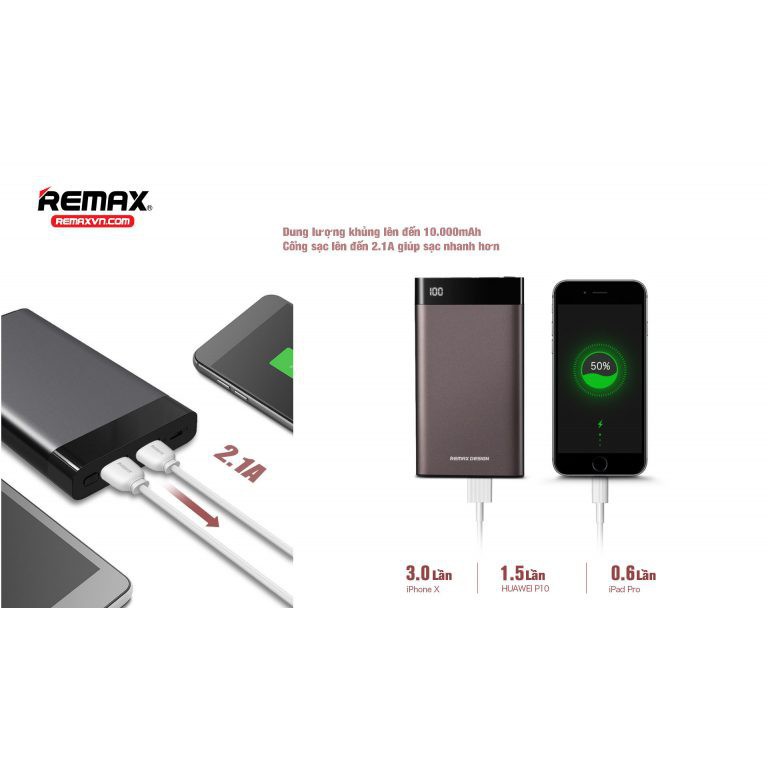 ✔️ Với dung lượng pin lên đến 10000mAh, sạc dự phòng RPP-155 cho phép bạn sạc đầy thiết bị của mình từ 2 – 4 lần, tùy vào dung lượng pin
