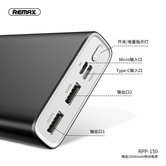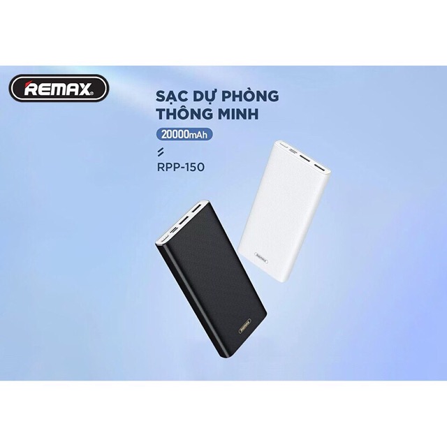 Pin sạc dự phòng remax RPP-150 dung lượng 20000mAh - Sạc dự phòng có 2 cổng usb đầu sạc 2 cổng1. ĐẶC ĐIỂM NỔI BẬT REMAX RPP-150