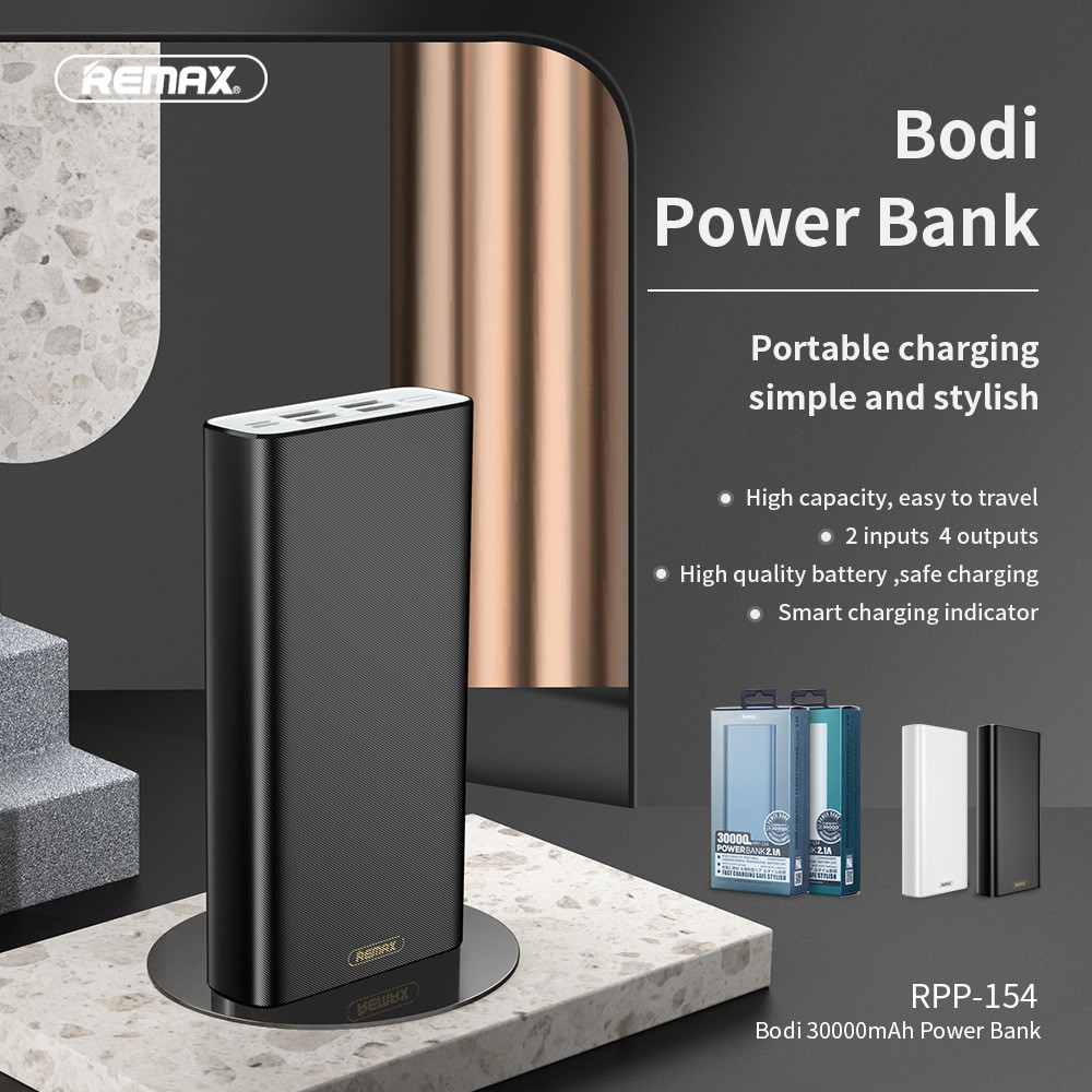 Pin sạc dự phòng Remax RPP-154 Bodi 30000mAh 2 cổng input, 4 cổng output max 2.1A - Hàng chính hãng