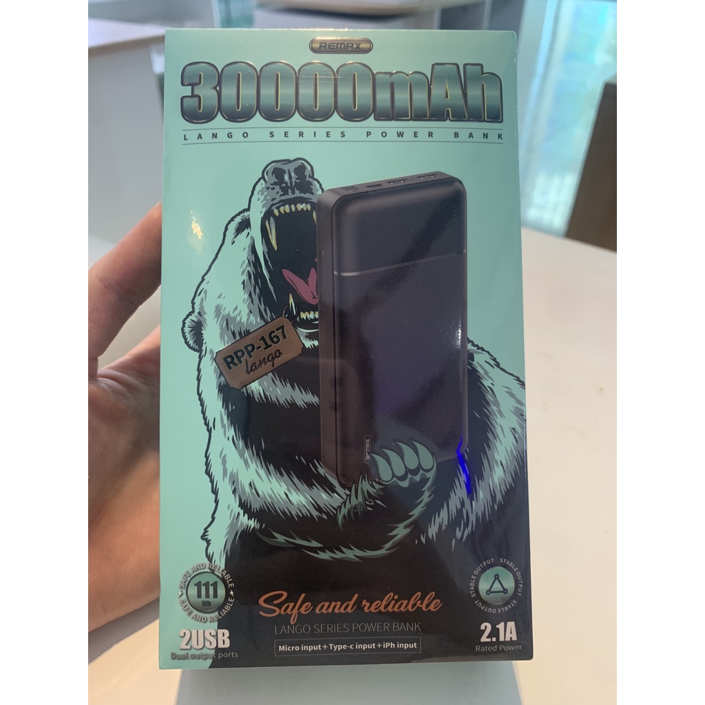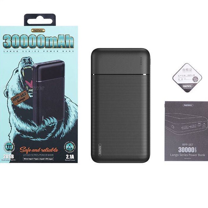 Điện Thoại & Phụ Kiện > Phụ kiện > Sạc dự phòng & Pin > Sạc dự phòng || Pin sạc dự phòng Remax RPP-167 30000mAh Lango, 3 cổng input, 2 cổng output (Hàng chính hãng)Còn hàng
