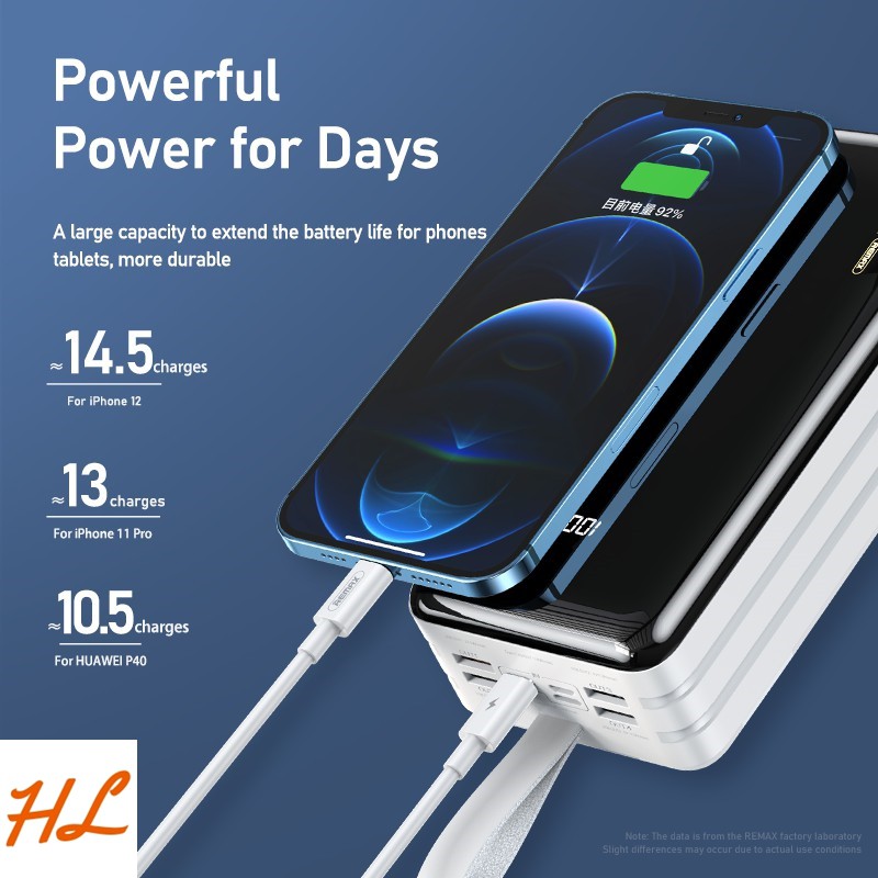 Pin Sạc Dự Phòng Remax RPP-173 60000Mah 22.5W, Lõi Li-Polymer 3 CổNg Input / 5 CổNg Output, Đèn Led Siêu Sáng