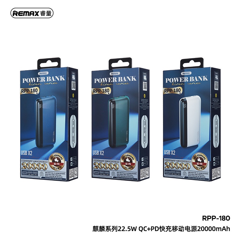 Điện Thoại & Phụ Kiện > Phụ kiện > Sạc dự phòng & Pin > Sạc dự phòng || Pin sạc dự phòng Remax RPP-180 20000mAh 2 Inputs 3 Outputs, TypeC PD 20W, USB 22.5W - Nhất Tín ComputerCòn hàng