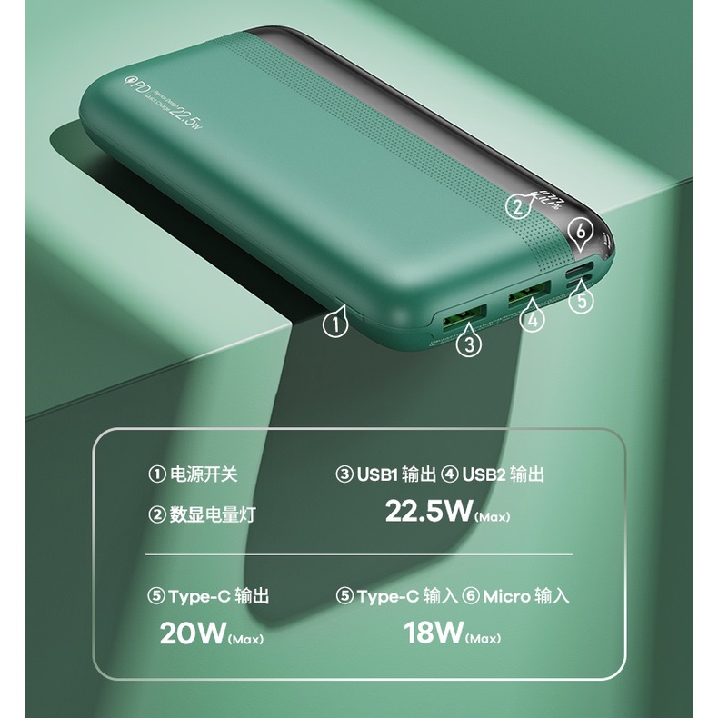 - Đầu ra TYPE-C: DC5V-3A, DC9V-2.22A, DC12V-1.67A (20W)