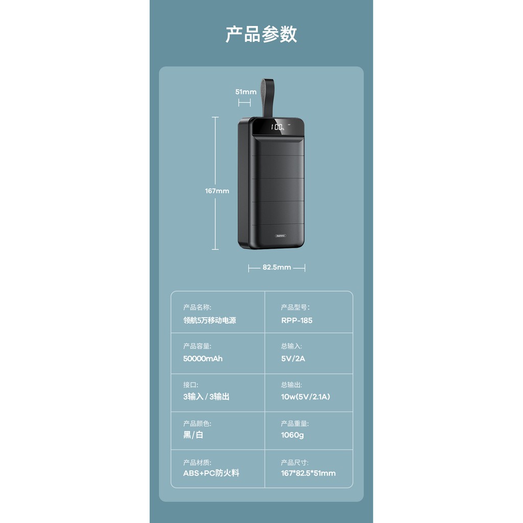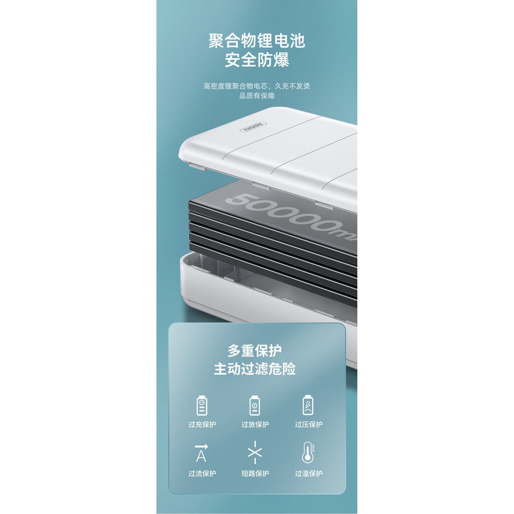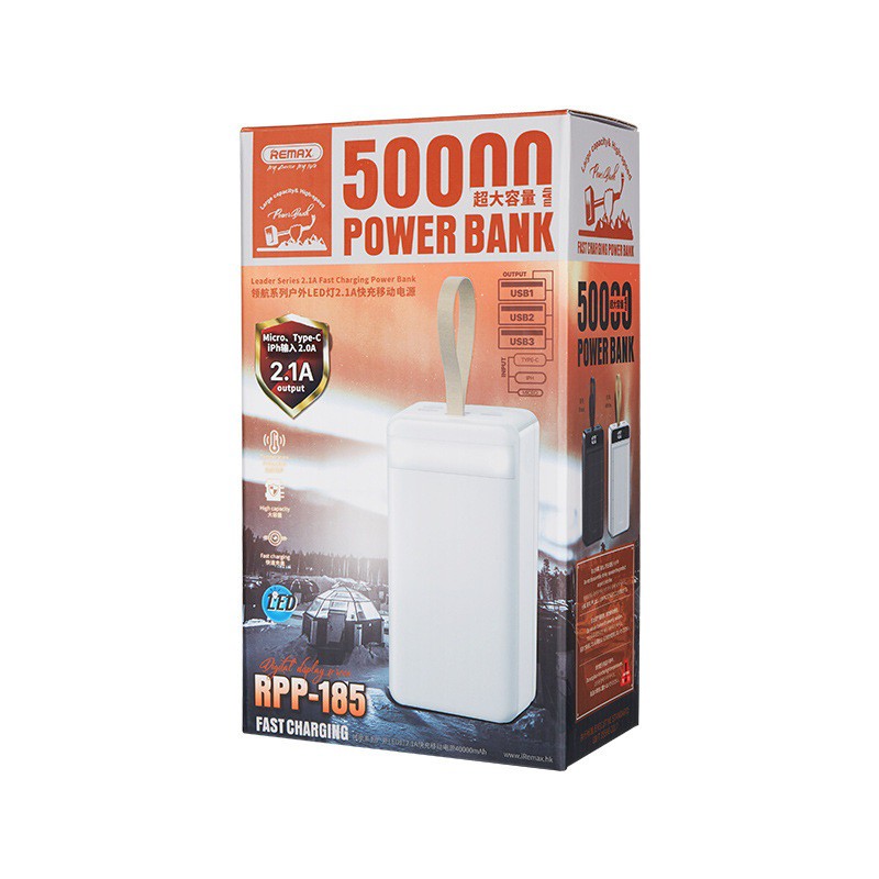 Pin sạc dự phòng Remax RPP-185 50000mAh, lõi Li-polymer, 3 cổng input, 4 cổng output - Hàng chính hãngThông số: