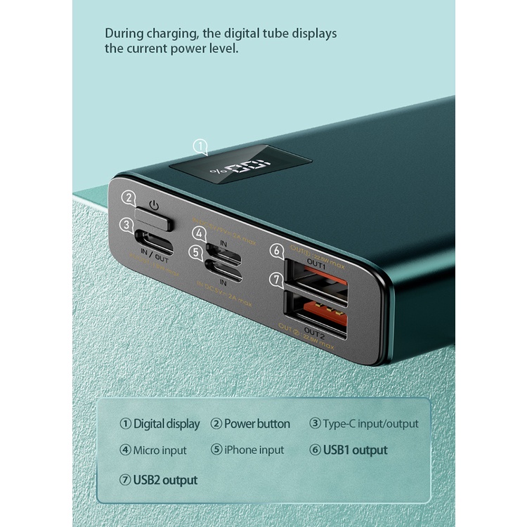 Với ưu điểm 3 cổng sạc vào Micro-USB, TypeC, Lightning mang lại sự tiện lợi hơn bao giờ hết. Bạn có thẻ dùng bất kì cáp sạc nào trong 3 cổng trên để sạc cho pin.